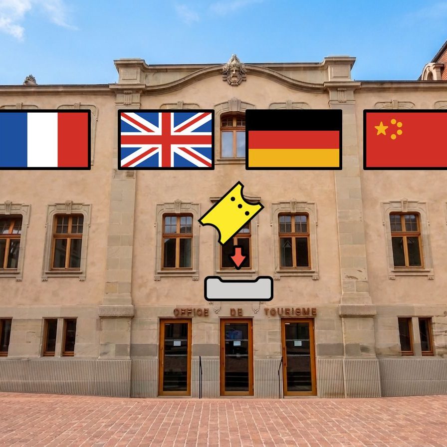 Choisissez votre langue parmi quatre options lorsque vous récupérerez la carte à l'Office du Tourisme de Colmar et commencer votre exploration sans plus attendre. Montrez simplement la facture envoyé par mail suite à votre réservation à l'accueil de l'Office du Tourisme de Colmar.